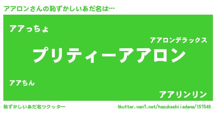 | 意味不明あだ名 | 『ペロリンアアロン』『自称アアロン』 |