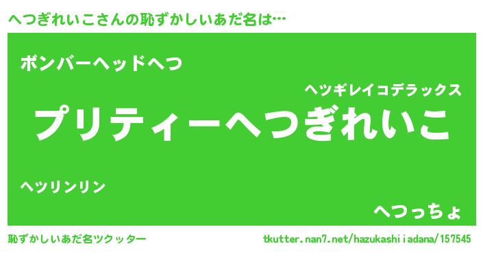 | 男性向けラノベタイトル風あだ名 | 『うちのへつぎれいこが世界を掌握している!』 |