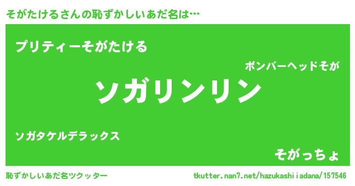 | 料理風あだ名 | 『そがたけるの豆乳スープ』 |