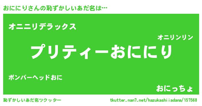 | 意味不明あだ名 | 『ペロリンおににり』『自称おににり』 |