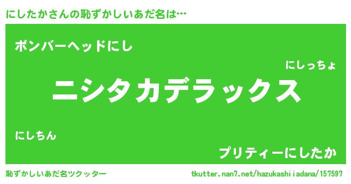 | ヒーロー風カッコイイあだ名 | 『サイバー戦士ニシタカ』『仮面ニシダー』 |