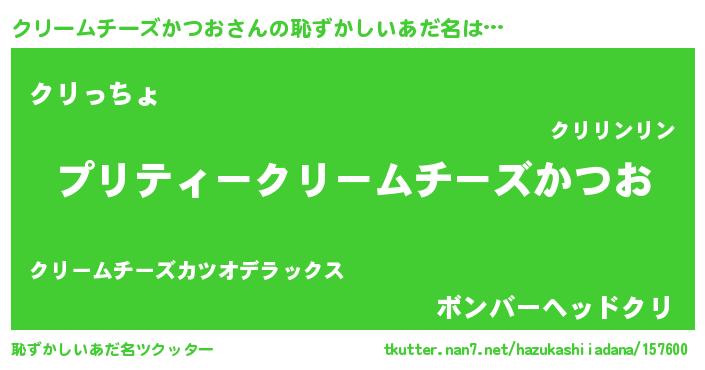 | ヒーロー風カッコイイあだ名 | 『スーパークリームチーズカツオ』 |