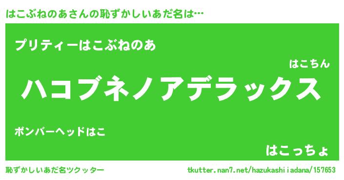 | ヘコむあだ名 | 『はこにー』『なまこ酢』『はこっぺ』 |
