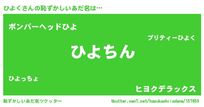 | ヘコむあだ名 | 『ひよく(爆)』『ひよふぇ~』『牛乳』 |