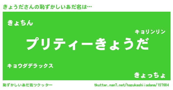 | ヒーロー風カッコイイあだ名 | 『スーパーキョウダ』『ネオキョウダ』 |