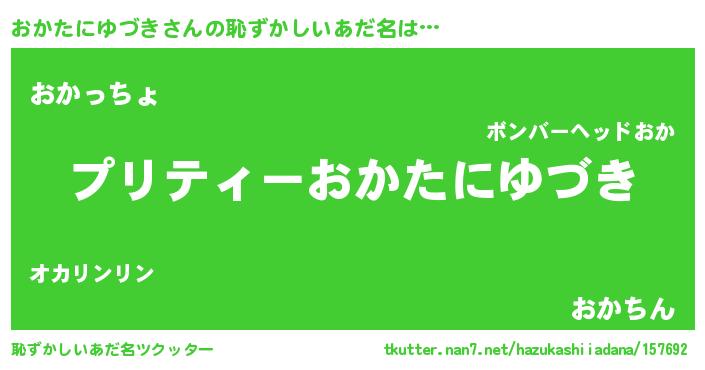 | 胡散臭い通販商品みたいなあだ名 | 『モテモテ間違いなし霊験あらたかなお札…その名も「おかたにゆづき」』 |