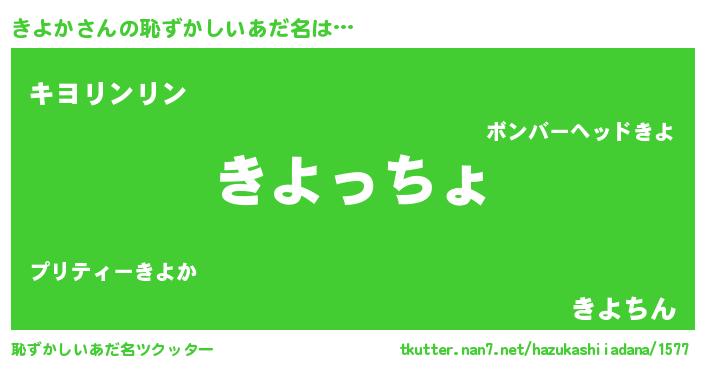 | 意味不明あだ名 | 『きよかフォーエバー』『永久保存きよか』 |
