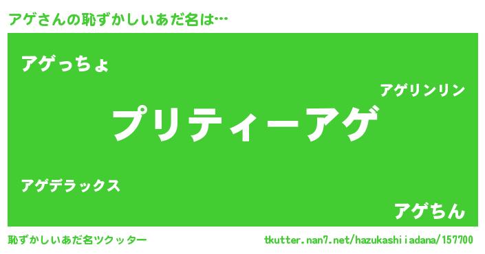 | ポケモン風あだ名 | 『アゲチュウ』『アゲダネ』『ヒアゲ』 |