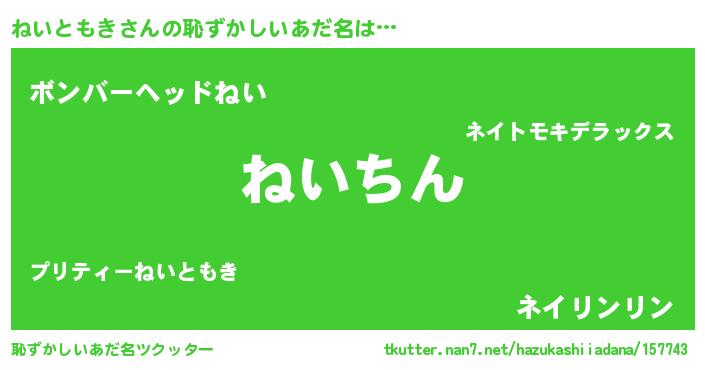 | ヘコむあだ名 | 『ねいともき(笑)』『ねいを』 |