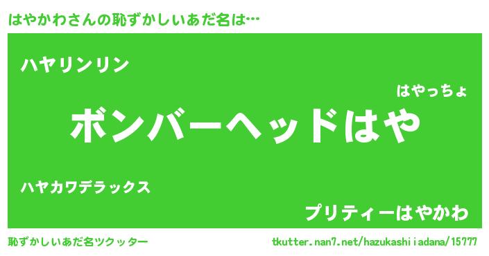 | ヒーロー風カッコイイあだ名 | 『正義の使者はやかわ』『天弓騎士ハヤ』 |