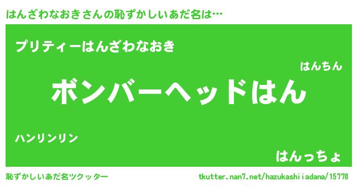 | 男性向けラノベタイトル風あだ名 | 『転生したらはんざわなおきだった件』 |