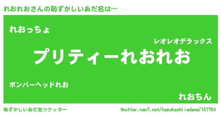| 男性向けラノベタイトル風あだ名 | 『この素晴らしい世界にれおれおを!』 |