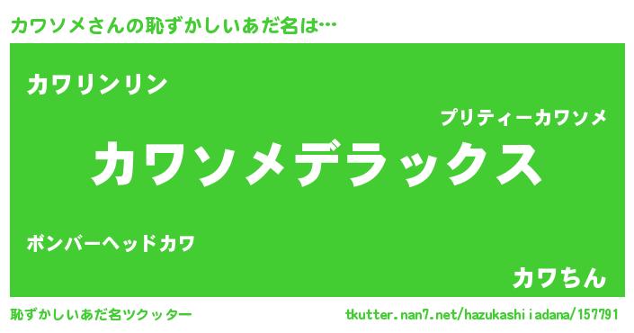 | ヒーロー風カッコイイあだ名 | 『サイバー戦士カワソメ』『仮面カワダー』 |