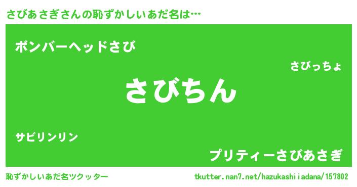 | ヘコむあだ名 | 『さびあさぎ(笑)』『さびふぇ~』 |