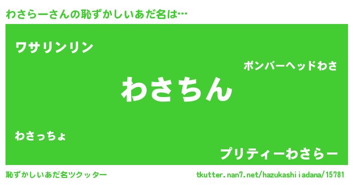 | 意味不明あだ名 | 『永久保存わさらー』『ペロリンわさらー』 |