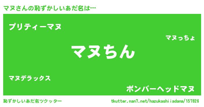 | 男性向けラノベタイトル風あだ名 | 『緋弾のマヌ』『はたらくマヌさま!』 |