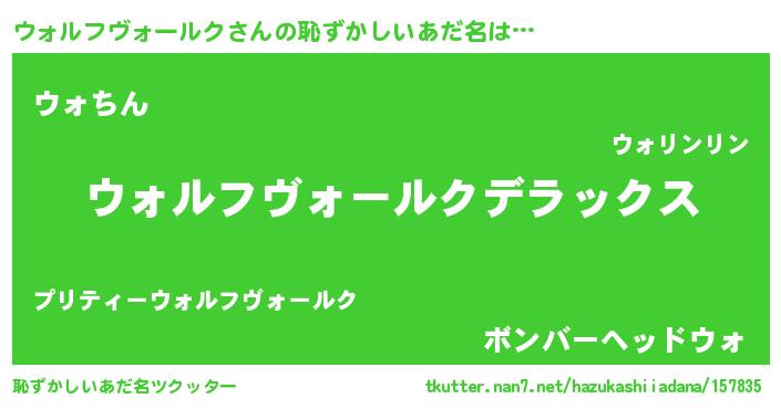 | ヘコむあだ名 | 『ウォルフヴォールク(笑)』『ウォぷりん』 |