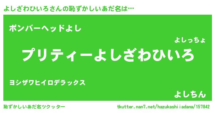 | 意味不明あだ名 | 『住所不定無職よしざわひいろ(7歳)』 |