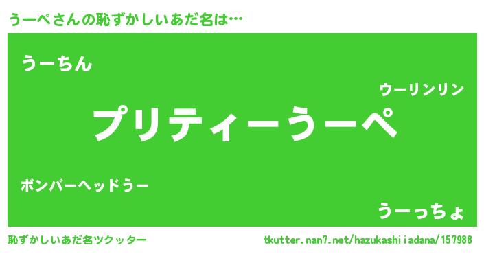 | 意味不明あだ名 | 『つくし科うーぺ属』『ペロリンうーぺ』 |