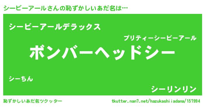 | 男性向けラノベタイトル風あだ名 | 『シービーアール~年齢イコール彼女いない歴の魔法使い~』 |