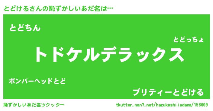 | ヘコむあだ名 | 『とどける(苦笑)』『とどっふぃ~』 |