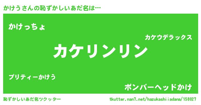 | ヒーロー風カッコイイあだ名 | 『幻影騎士カケ』『ウルトラかけうマン』 |