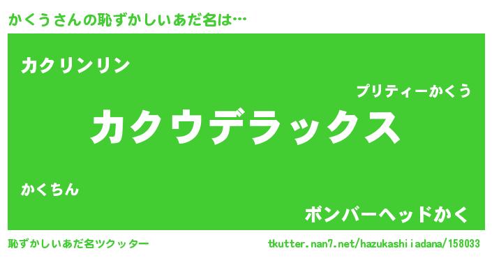 | ヒーロー風カッコイイあだ名 | 『最強戦士カクウ』『天弓騎士カク』 |