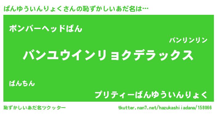 | ヒーロー風カッコイイあだ名 | 『最強戦士バンユウインリョク』 |