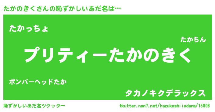 | 意味不明あだ名 | 『ペロリンたかのきく』『自称たかのきく』 |