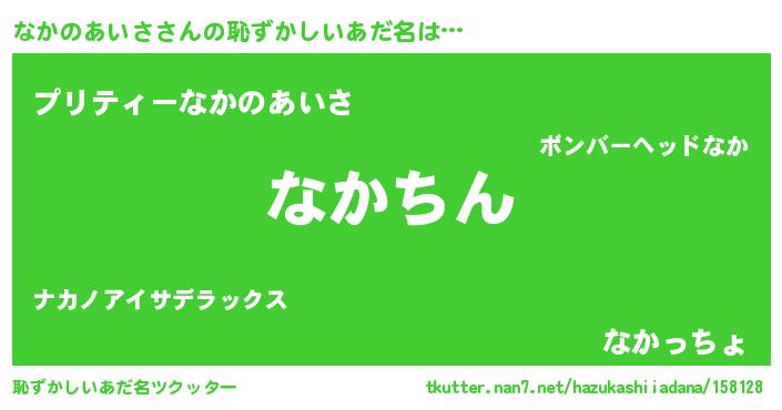 | ヘコむあだ名 | 『なかのあいさ(笑)』『なかにゅー』 |