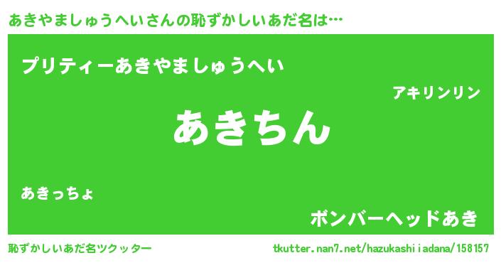 | ヘコむあだ名 | 『あきやましゅうへい(震え声)』『つくし』 |