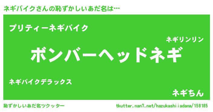 | 男性向けラノベタイトル風あだ名 | 『おまえをオタクにしてやるから、俺をネギバイクにしてくれ! 』 |