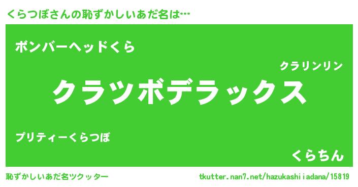 | 意味不明あだ名 | 『自称くらつぼ』『永久保存くらつぼ』 |