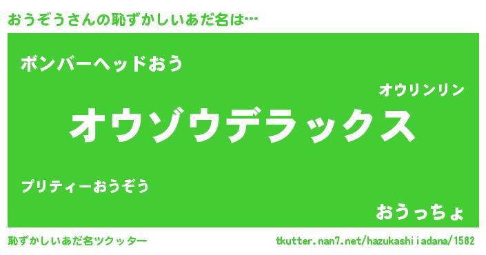 | 男性向けラノベタイトル風あだ名 | 『Re:おうぞうから始める異世界生活』 |
