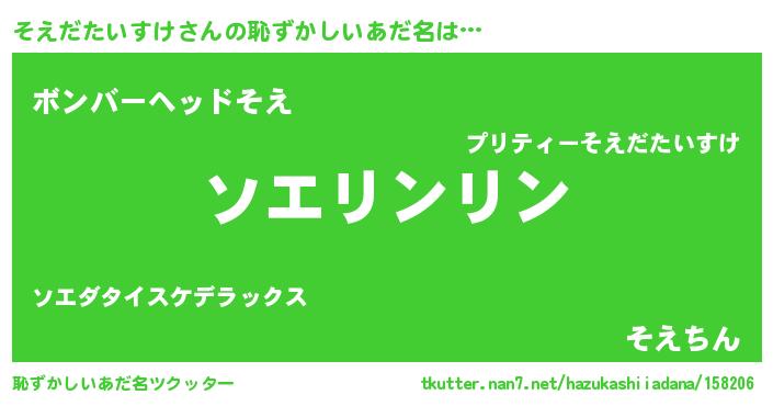 | 男性向けラノベタイトル風あだ名 | 『そえだたいすけの嫁は女の子じゃないと思った?』 |