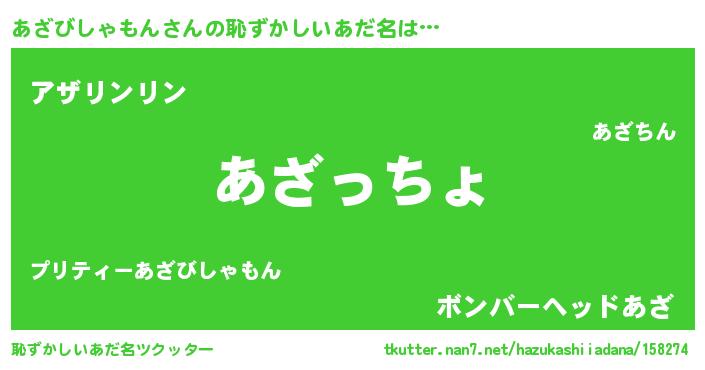 | 意味不明あだ名 | 『あざびしゃもんフォーエバー』 |