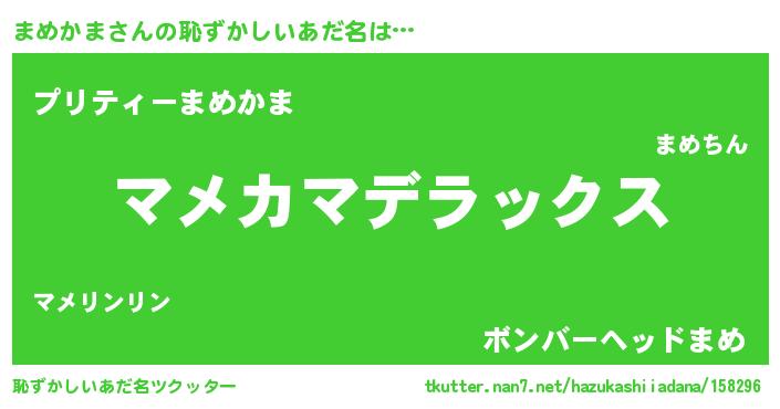 | 意味不明あだ名 | 『自称まめかま』『ペロリンまめかま』 |