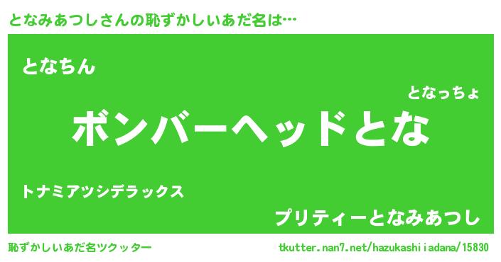 | 男性向けラノベタイトル風あだ名 | 『トナミアツシスレイヤー』 |
