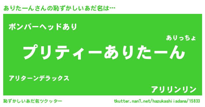 | ヘコむあだ名 | 『ありもー』『あり太郎』『豆乳』 |
