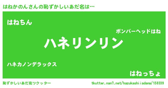 | 意味不明あだ名 | 『とにかく怪しいはねかのん』 |