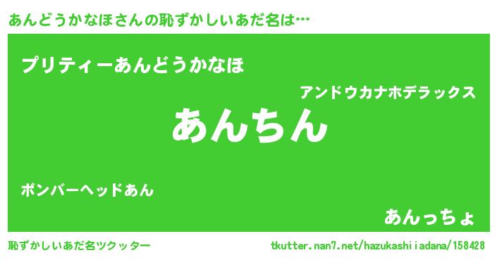 | ヘコむあだ名 | 『あんどうかなほ(笑)』『あんもー』 |