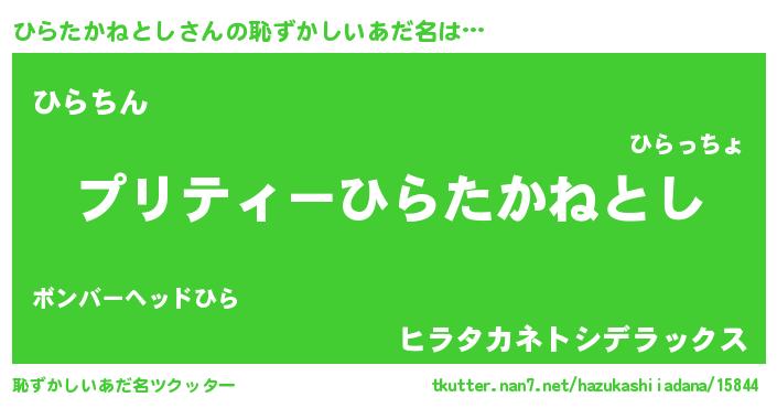 | 胡散臭い通販商品みたいなあだ名 | 『モテモテ間違いなし霊験あらたかなお札…その名も「ひらたかねとし」』 |