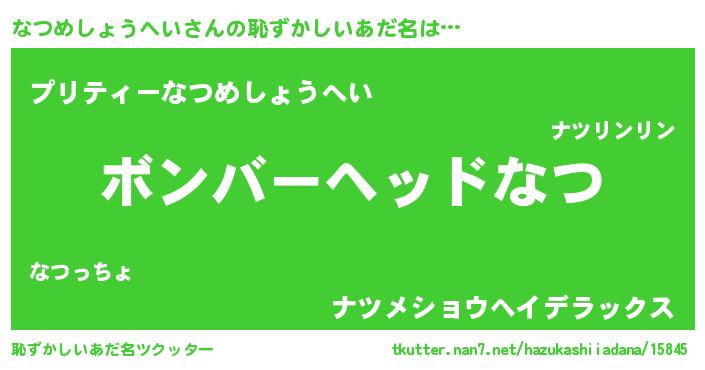 | 女子向けラノベタイトル風あだ名 | 『なつめしょうへい恋絵巻』 |