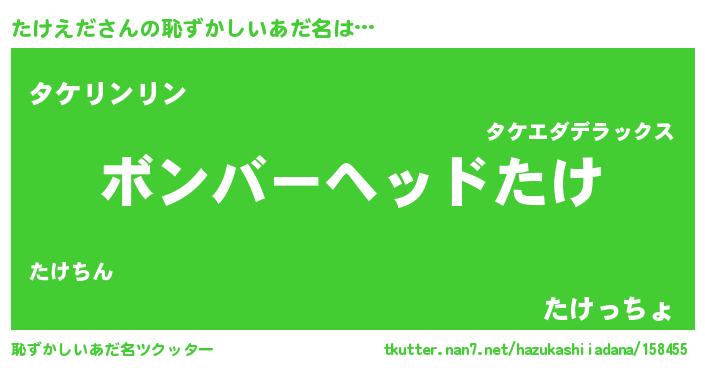 | ヒーロー風カッコイイあだ名 | 『正義の使者たけえだ』『暗黒騎士タケ』 |