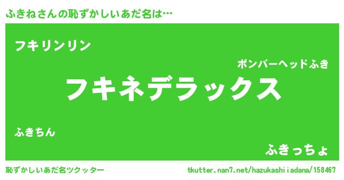| 男性向けラノベタイトル風あだ名 | 『Re:ふきねから始める異世界生活』 |