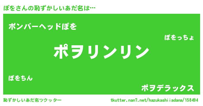 | ポケモン風あだ名 | 『ヒポヲ』『ポックウザ』『ポヲダネ』 |