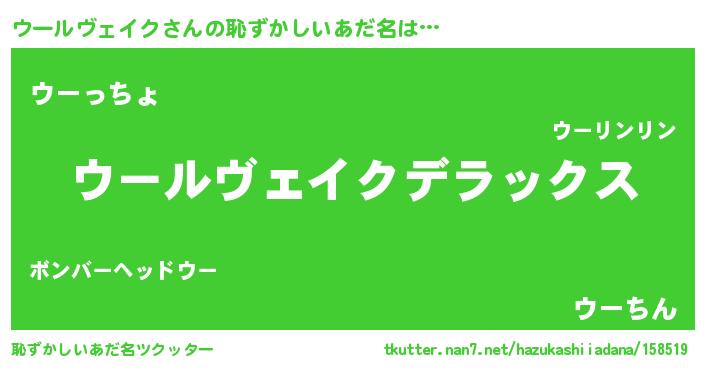 | ヒーロー風カッコイイあだ名 | 『仮面ウーダー』『ネオウールヴェイク』 |