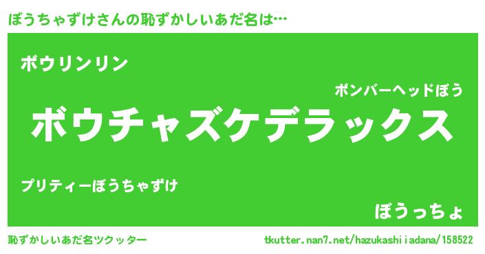 | 意味不明あだ名 | 『自称ぼうちゃずけ』 |