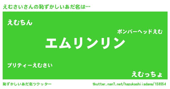 | 意味不明あだ名 | 『住所不定無職えむさい(12歳)』 |
