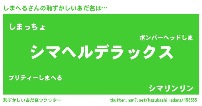 | 意味不明あだ名 | 『自称しまへる』『しまへるフォーエバー』 |